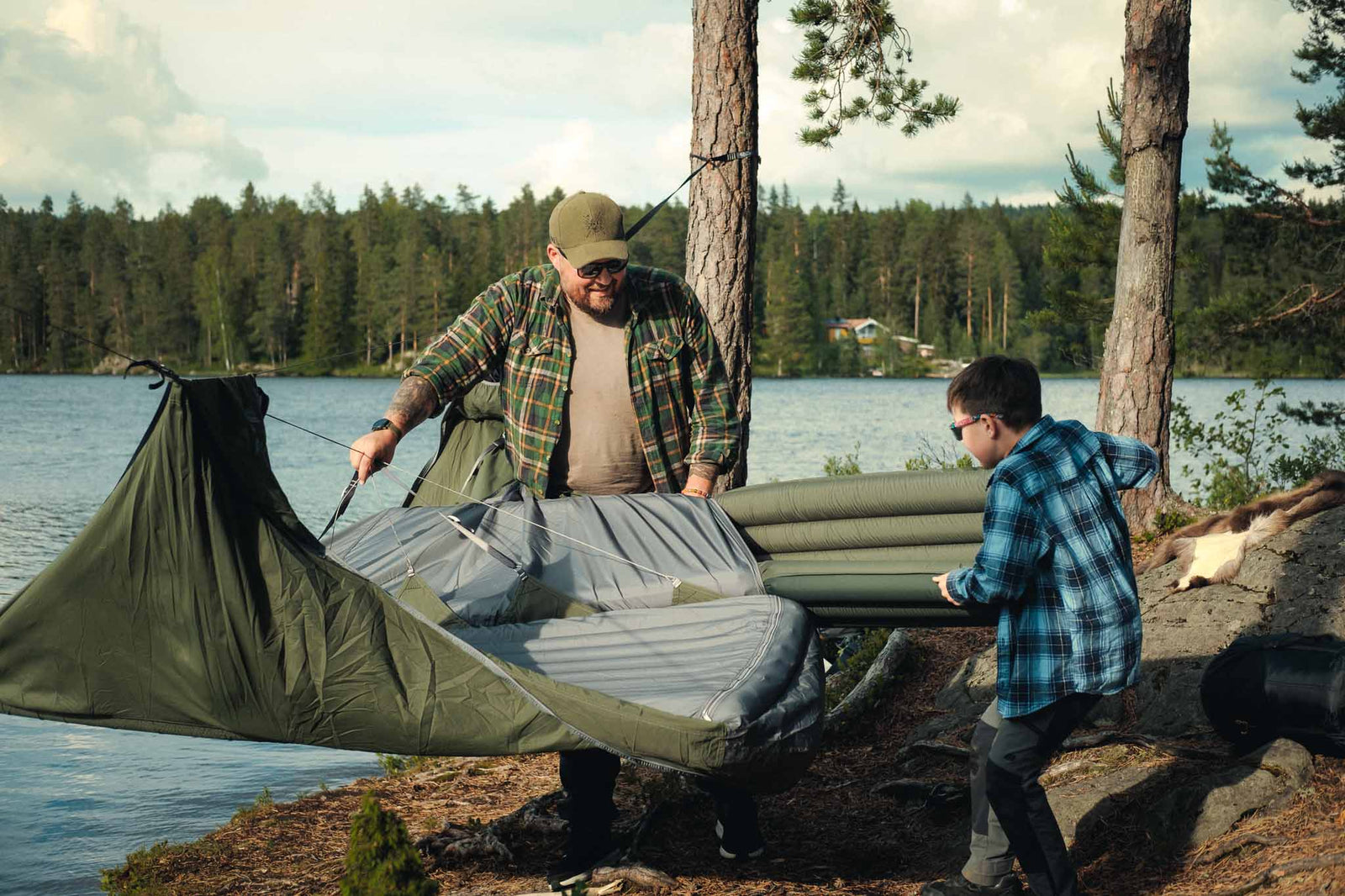 Norwegischer Doppelkomfort. Die einzige wirklich funktionierende Doppel-Hängematte auf dem Markt. Perfekt für Abenteuer: Doppelbett für die Nacht und gemütliches Sofa für den Morgenkaffee.